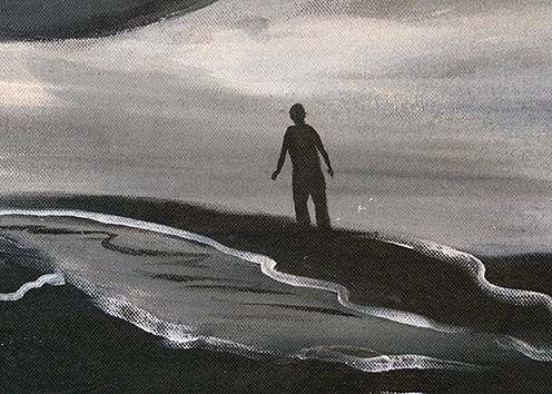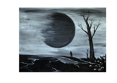 لوحة تشكيلية بألوان زيتية (غروب أبيض وأسود) - Oil painting (black and white sunset)